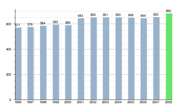 Według danych z dnia 31 grudnia 2012 roku, wieś zamieszkiwało 709 osób, w tym 359 kobiet i 350 mężczyzn[7].