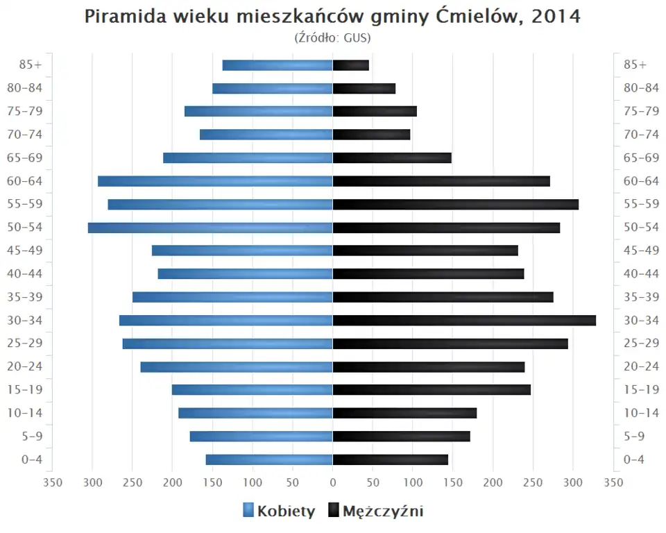 - Piramida wieku mieszkańców gminy Ćmielów w 2014 roku[1].