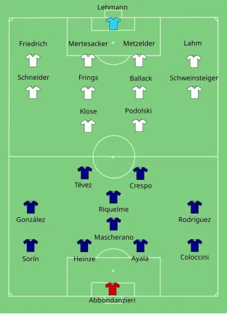 | Ballack: gol | 4:2 | Ayala: obroniony |