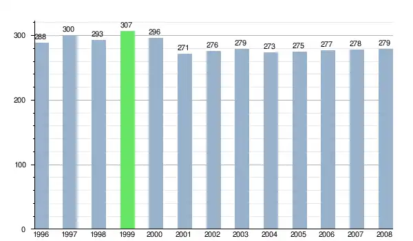 Według danych z dnia 31 grudnia 2012, wieś zamieszkiwało 270 osób, w tym 127 kobiet i 143 mężczyzn[6].