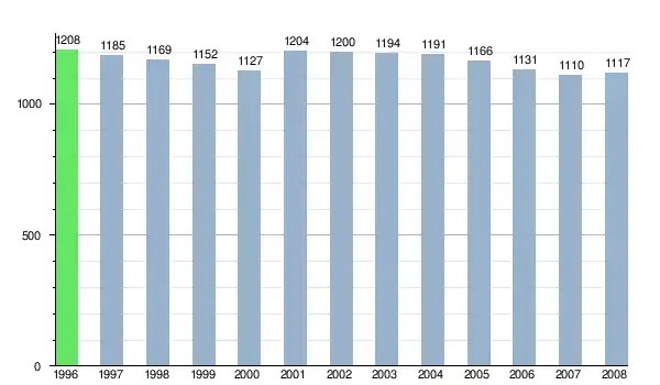 Zmiany liczby ludności w miejscowości Čata od 1996 roku.