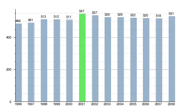Według danych z dnia 31 grudnia 2012 roku, wieś zamieszkiwało 549 osób, w tym 278 kobiet i 271 mężczyzn[6].