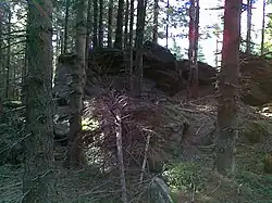 | 3 | Hubertka (2)[f][34] | 500 na południowy zachód | stok południowo-zachodni | 50°08′29,3″N 17°16′21,5″E/50,141472 17,272639 |