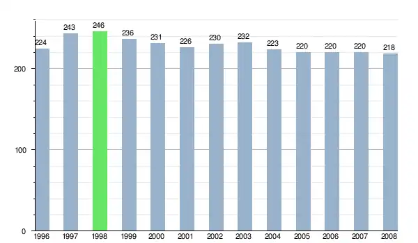 Według danych z dnia 31 grudnia 2012, wieś zamieszkiwały 203 osoby, w tym 117 kobiet i 86 mężczyzn[6].