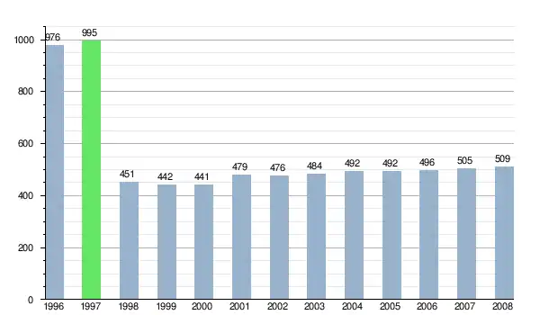 Zmiany liczby ludności w miejscowości České Brezovo od 1996 roku.