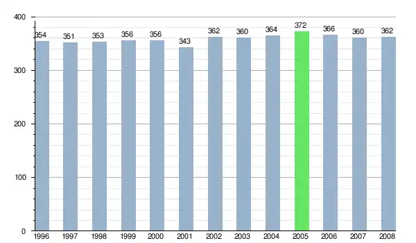 Według danych z dnia 31 grudnia 2012, wieś zamieszkiwało 387 osób, w tym 196 kobiet i 191 mężczyzn[6].