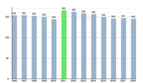 Zmiany liczby ludności w miejscowości Čierny Potok od 1996 roku.