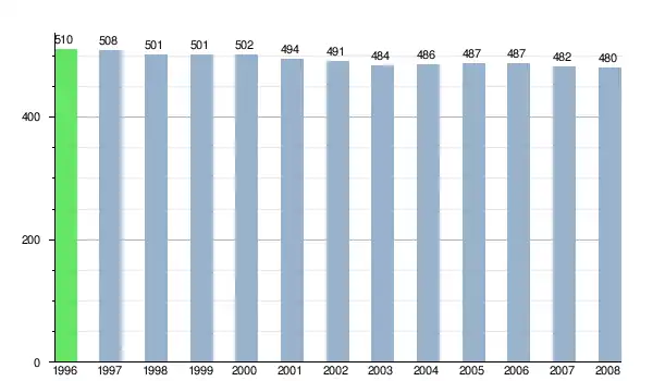 Według danych z dnia 31 grudnia 2012, wieś zamieszkiwały 473 osoby, w tym 243 kobiety i 230 mężczyzn[6].