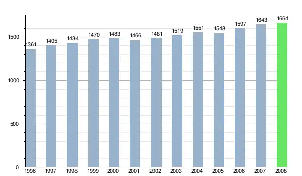Według danych z dnia 31 grudnia 2012, wieś zamieszkiwało 1717 osób, w tym 845 kobiet i 872 mężczyzn[6].