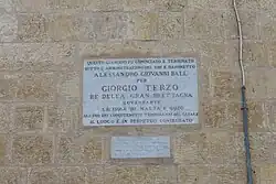 (co w wolnym tłumaczeniu znaczy: Ogród ten został rozpoczęty i ukończony pod zarządem rycerza i baroneta Aleksandra Johna Balla, dla Jerzego Trzeciego, króla Wielkiej Brytanii, władcy wysp Malta i Gozo, do użytkowania przez tymczasowych poruczników wioski, ku świętej wiecznej pamięci.)