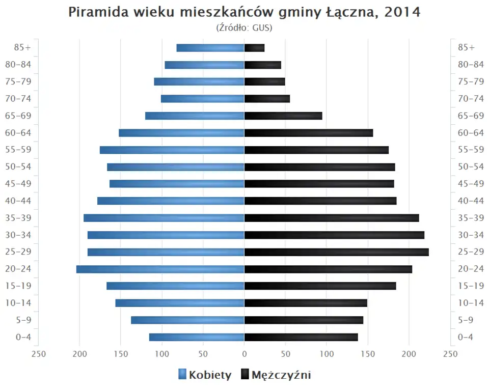 - Piramida wieku mieszkańców gminy Łączna w 2014 roku[1].