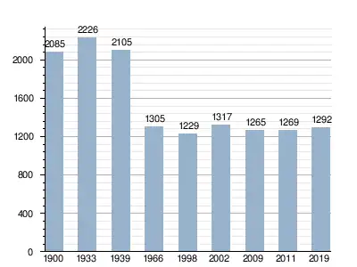 Według danych na 2011 wieś była zamieszkana przez 1269 osób[7].