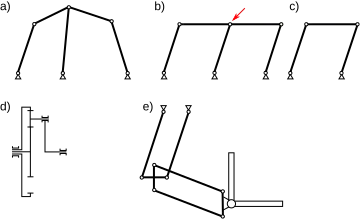 Interpretacja ruchliwości obliczonej ze wzoru strukturalnego wymaga pewnego doświadczenia, w szczególności gdy wskazuje on, iż łańcuch kinematyczny jest sztywny. Taka sytuacja jest oczywista w przypadku a. W pewnych przypadkach jednak, przy szczególnej geometrii, łańcuch teoretyczne sztywny może przenosić ruch (przypadek b). Strukturalnie jest on identyczny z a, lecz występują w nim trzy geometrycznie identyczne człony co umożliwia ruch łańcucha. Para kinematyczna, która powinna łańcuch usztywniać (wskazana czerwoną strzałką) jest węzłem biernym. Projektując mechanizm z węzłami biernymi, konstruktor musi zdawać sobie sprawę, że zużycie elementów mechanizmu, prowadzące do drobnych zmian w ich geometrii, może doprowadzić do usztywnienia mechanizmu. Łańcuch kinematyczny sztywny, aczkolwiek teoretycznie takim jest w praktyce jest stosowany jako konstrukcja służąca wyłącznie do przenoszenia obciążenia, a nie ruchu i nie jest przedmiotem teorii mechanizmów i maszyn, lecz wytrzymałości materiałów i teorii konstrukcji.