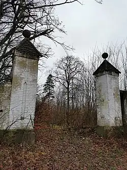 Cmentarz rodowy z kolei zachował się dość dobrze[10]. Czytelny jest jego układ przestrzenny[10]. Zachowała się mała architektura[10]. Na mapach archiwalnych jest wyrysowany na planie kwadratu, w terenie jednak otaczający go z jednej strony mur ma łukowaty kształt i zwieńczony jest wysokim krzyżem[10].