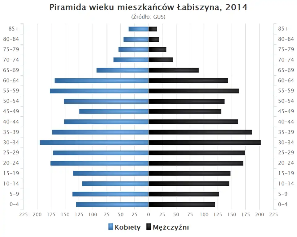 - Piramida wieku mieszkańców Łabiszyna w 2014 roku[7].