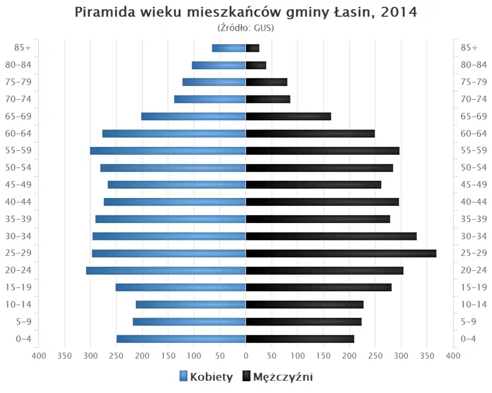 - Piramida wieku mieszkańców gminy Łasin w 2014 roku[1].