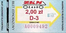 Bilet jednorazowy ulgowy ważny na linii C lub D (na tych liniach bilety na I i III strefę są te same, ZKM Łask nigdy nie wprowadził do sprzedaży biletu, typu: C-3)