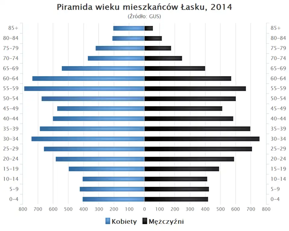 - Piramida wieku mieszkańców Łasku w 2014 roku[13].