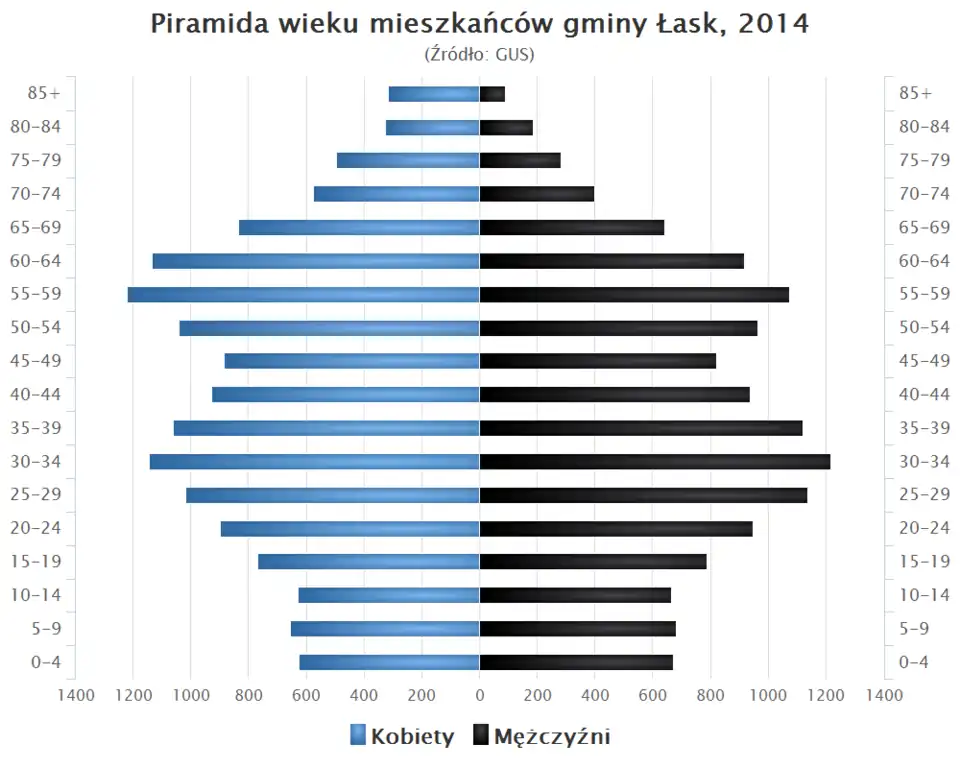 - Piramida wieku mieszkańców gminy Łask w 2014 roku[1].