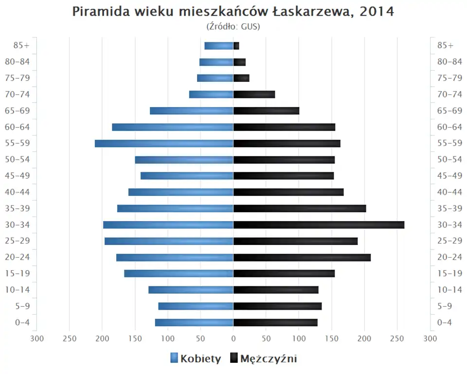 - Piramida wieku mieszkańców Łaskarzewa w 2014 roku[1].