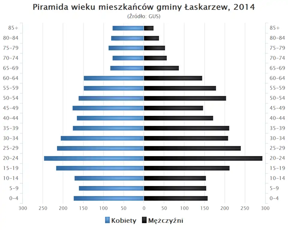 - Piramida wieku mieszkańców gminy Łaskarzew w 2014 roku[1].