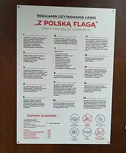 - ↑ „Patriotyczna ławka” kosztowała 100 tysięcy złotych, deszczu nie przetrwała. tvn24, 2022-09-10. [dostęp 2023-12-31].