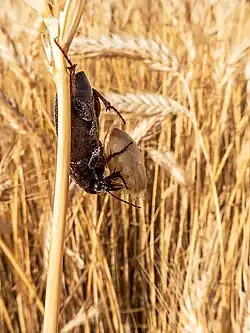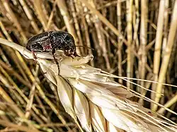 Gatunek ten w przeciwieństwie do innych chrząszczy, które w większości są mięsożerne, jest gatunkiem roślinożernym. Dorosłe osobniki wchodzą na dojrzewające kłosy zbóż wyjadając tam ziarna, larwy natomiast odżywiają się młodymi liśćmi tych zbóż. Z tego względu chrząszcz ten zaliczany jest do szkodników, choć nie na taka skalę jak inne (wyrządza mniej szkód).