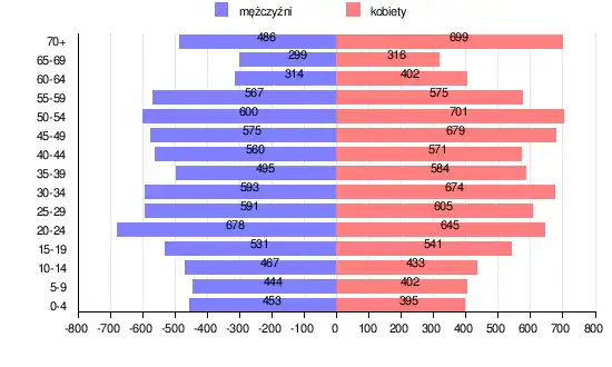 | Populacja | 15 875 | 100 | 7653 | 48,2 | 8222 | 51,8 |
