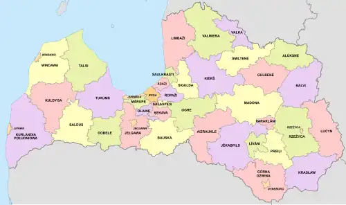 - ↑ administratīvi teritoriālais iedalījums Latvijā [online], enciklopedija.lv [dostęp 2024-02-28].