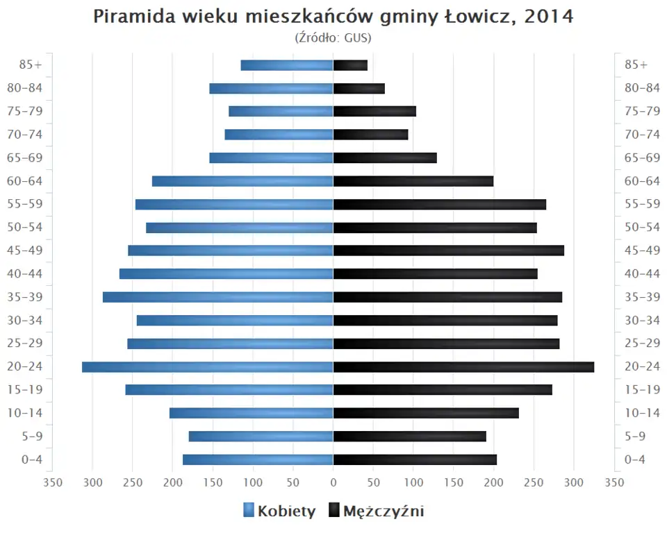 - Piramida wieku mieszkańców gminy Łowicz w 2014 roku[1].