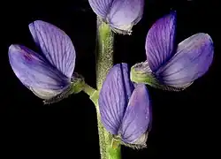 - Motylkowe, drobne, skupione w gęste grona, niebieskie lub fioletowe, rzadziej w kolorze różowym lub białym. Pręcików 10 zrośniętych w rurkę i 1 słupek.