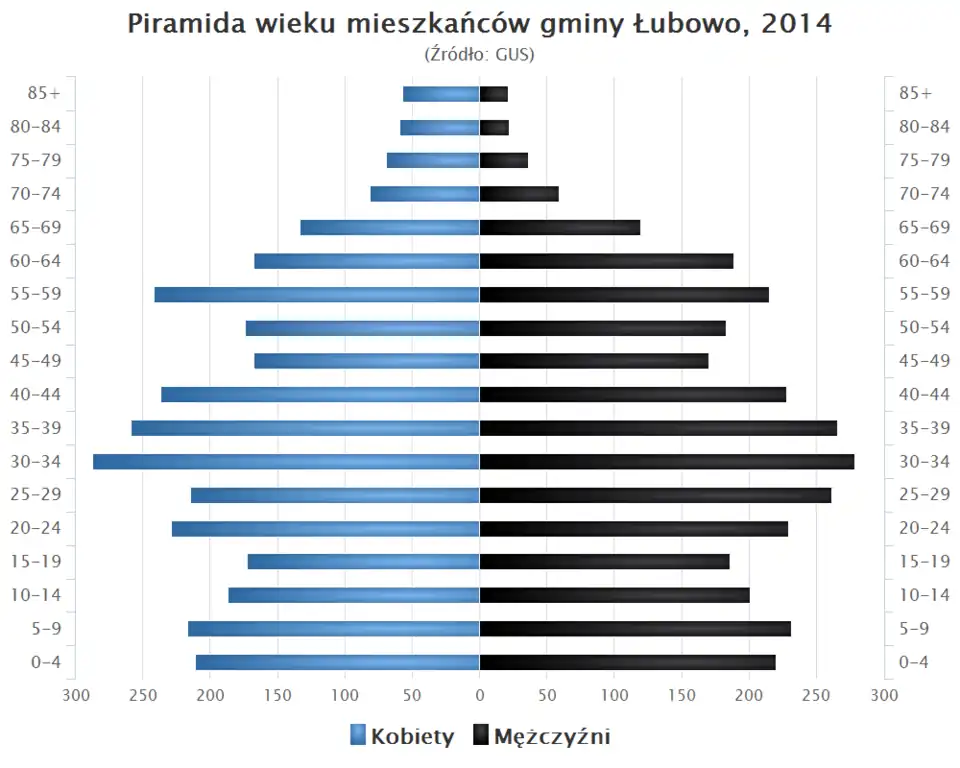 • Piramida wieku mieszkańców gminy Łubowo w 2014 roku[1].