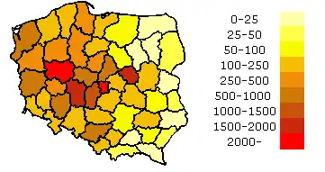 Blisko 70% noszących to nazwisko mieszka na terenie od ziemi lubuskiej przez Wielkopolskę do Warszawy.
