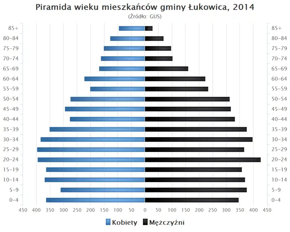 - Piramida wieku mieszkańców gminy Łukowica w 2014 roku[5].