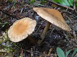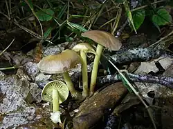 - łysostopek pospolity (Gymnopus dryophilus). Ma pomarańczowobrązowy kapelusz i gładki trzon[5].
