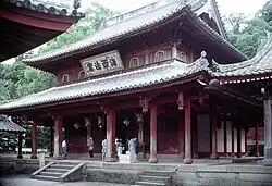 Pierwszym mnichem buddyjskim, który zyskał tu sobie dobrą reputację był mistrz chan Daozhe Chaoyuan (1602–1662) (jap. Dōsha Chōgen). Pochodził z Fujian. Oto jego 'rodzinna' linia przekazu Dharmy: