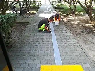 - w dużych, otwartych przestrzeniach, w których osoba niewidoma lub słabowidząca może mieć problemy z wytyczeniem sobie właściwej drogi[2].