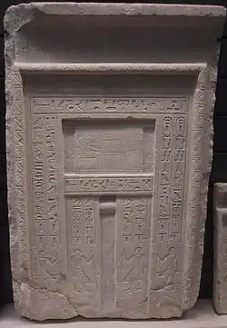 Była nim kamienna płyta przedstawiająca fałszywe zamknięte drzwi, czasem dekorowana reliefowo i opatrzona rytualnymi inskrypcjami, umieszczana na czołowej ścianie grobowca (mastaby). W grobach skalnych z okresu Nowego Państwa w pobliżu Teb przedstawiano je jako dekorację malowaną[1].