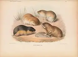 - Ellobius tsharynensis Tyutkova, 1989[19] (Kazachstan; pliocen)