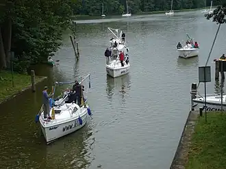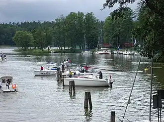 - 1 2 Krzysztof Siemieński, Wielkie Jeziora Mazurskie – Od Pisza i Karwicy przez Mikołajki, Ryn, Giżycko do Węgorzewa, Rafał Sarna (red.), wyd. II zaktualizowane, Warszawa: Nautica, 2021, s. 73, ISBN 978-83-66846-03-6 [dostęp 2021-04-15] (pol.).