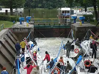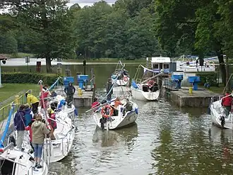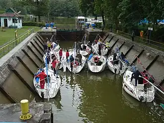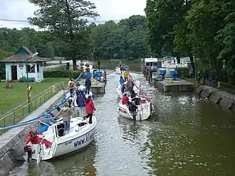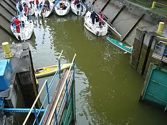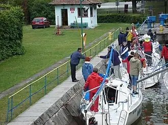 Dopływając do śluzy należy zachować ostrożność i dobry obyczaj żeglarski, przepuszczając jednostki wypływające ze śluzy i nie wpływając przed jednostki już czekające na wpłynięcie do śluzy.