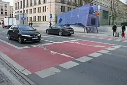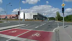 - śluza do skrętu w lewo w obrębie drogi dla rowerów w narożniku skrzyżowania[14][15].