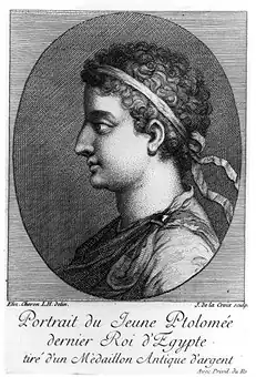 Król Ptolemeusz rozmawia ze swymi doradcami Fotynem, Achillasem i Septymiuszem na temat tego jak postąpić z Pompejuszem, który po klęsce pod Farsalos, przybył do Aleksandrii i prosi o pomoc. Doradcy pomimo pewnej rozbieżności zdań radzą królowi go zabić. Ptolemeusz wysyła więc Achillasa i Septymiusza, by dokonali morderstwa. Siostra Ptolemeusza, chociaż o jej wdzięki zabiega Cezar, uważa, że lepiej dla Egiptu będzie związać się z Pompejuszem. Jest oburzona niewdzięcznością brata dla ich dobroczyńcy, który osadził na tronie egipskim ich ojca. Ptolemeusz niepokoi się, co będzie mógł przeciwstawić wdziękom Kleopatry wobec Cezara. Fotyn jest zdania, że wystarczającym zadatkiem sojuszu będzie głowa Pompejusza[2].