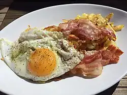 - ↑ breakfast noun [online], Merriam-Webster [dostęp 2020-07-19] (ang.).