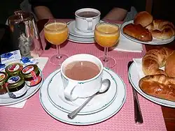 Śniadanie kontynentalne – podstawowe śniadanie składające się z pieczywa, masła, miodu, dżemu oraz kawy lub herbaty.