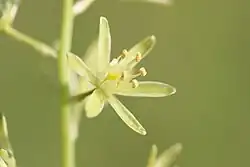 - Zebrane w podługowato-piramidalne grono złożone z 20–50 kwiatów. Okwiat tworzą listki długości 6–8 mm, równowąsko-podługowate, gwiaździście odstające, żółtawe lub zielonkawe, od spodu z zielonkawymi pasmami[4].