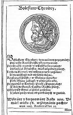 - ↑ Por. Katalog Królów y Xiążąt polskich albo Porządek a Ordunk, począwszy od Lecha I aż do dzisiejszego Stefana, rytmem polskim dla snadnieyszey pamięci ułożony Karol Estreicher: Bibliografia polska. Cz. 3, t. 8 : [K]. Kraków: Akademia Umiejętności, 1908, s. 170.