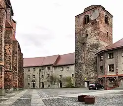 - kościół pw. św. Piotra i Pawła usytuowany na północ od kompleksu zamkowo-pałacowego, powstał w końcu XIII wieku,