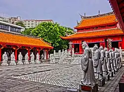 W Nagasaki od najdawniejszych czasów mieszkało wielu Chińczyków, głównie kupców. Zbudowali oni tutaj (przy pomocy finansowej rządu chińskiego) pierwsze sanktuarium ku czci Konfucjusza w 1893. 9 sierpnia 1945, w rezultacie pożaru miasta wywołanego przez bombardowanie atomowe Nagasaki, sanktuarium spłonęło. Odbudowa trwała 8 lat i zakończyła się w 1967. Obiekt poddano gruntownej renowacji w 1982. Sanktuarium wyróżnia się szkarłatnymi ścianami i jaskrawożółtymi dachami. Na dziedzińcu stoją 72 marmurowe posągi Konfucjusza i jego uczniów. Początkowo przy sanktuarium działała szkoła chińska, obecnie znajduje się tu Chińskie Muzeum Historyczne, które prezentuje cenne eksponaty wypożyczone z Chin i jest utrzymywane przez swój muzealny odpowiednik w Pekinie. Zarządcą kompleksu jest Ambasada ChRL w Tokio[1].