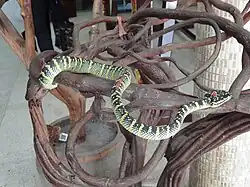 Wąż Tropidolaemus wagleri pod sufitem świątyni (2013)